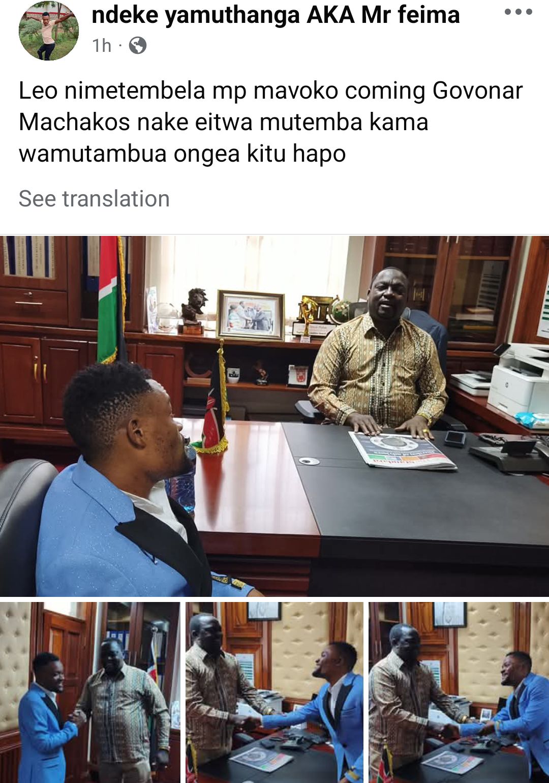 In a surprise political twist, Ndeke paid a courtesy call to Hon. Makau at the Parliament Buildings, where the two engaged in what sources termed as “an insightful interaction on the future of Machakos County.”