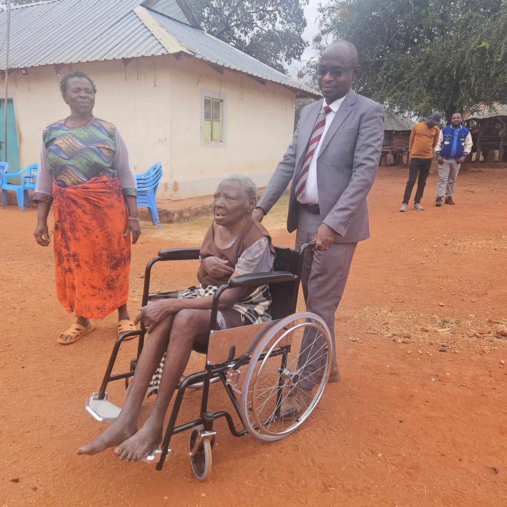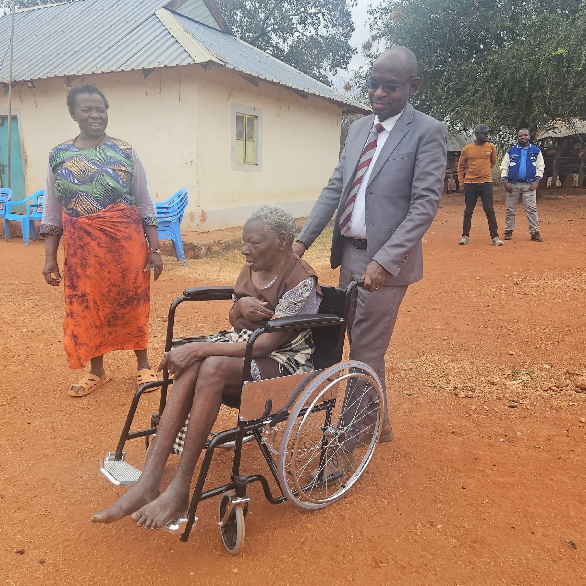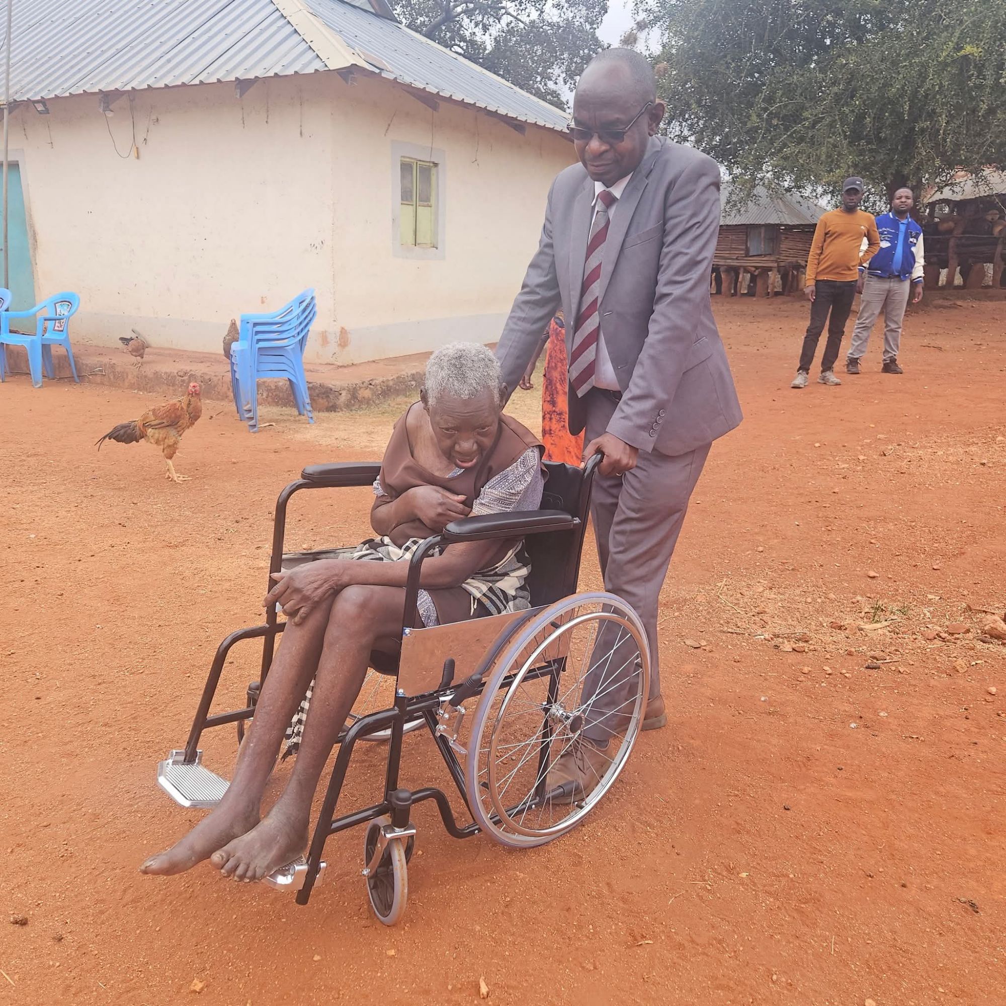 Yatta kwa Vonza MCA Hon. Mark Ndingo, accompanied by his colleague Hon. Mary Mbithe, today donated a wheelchair to Syokau Munyoki, an elderly resident believed to be over 100 years old.